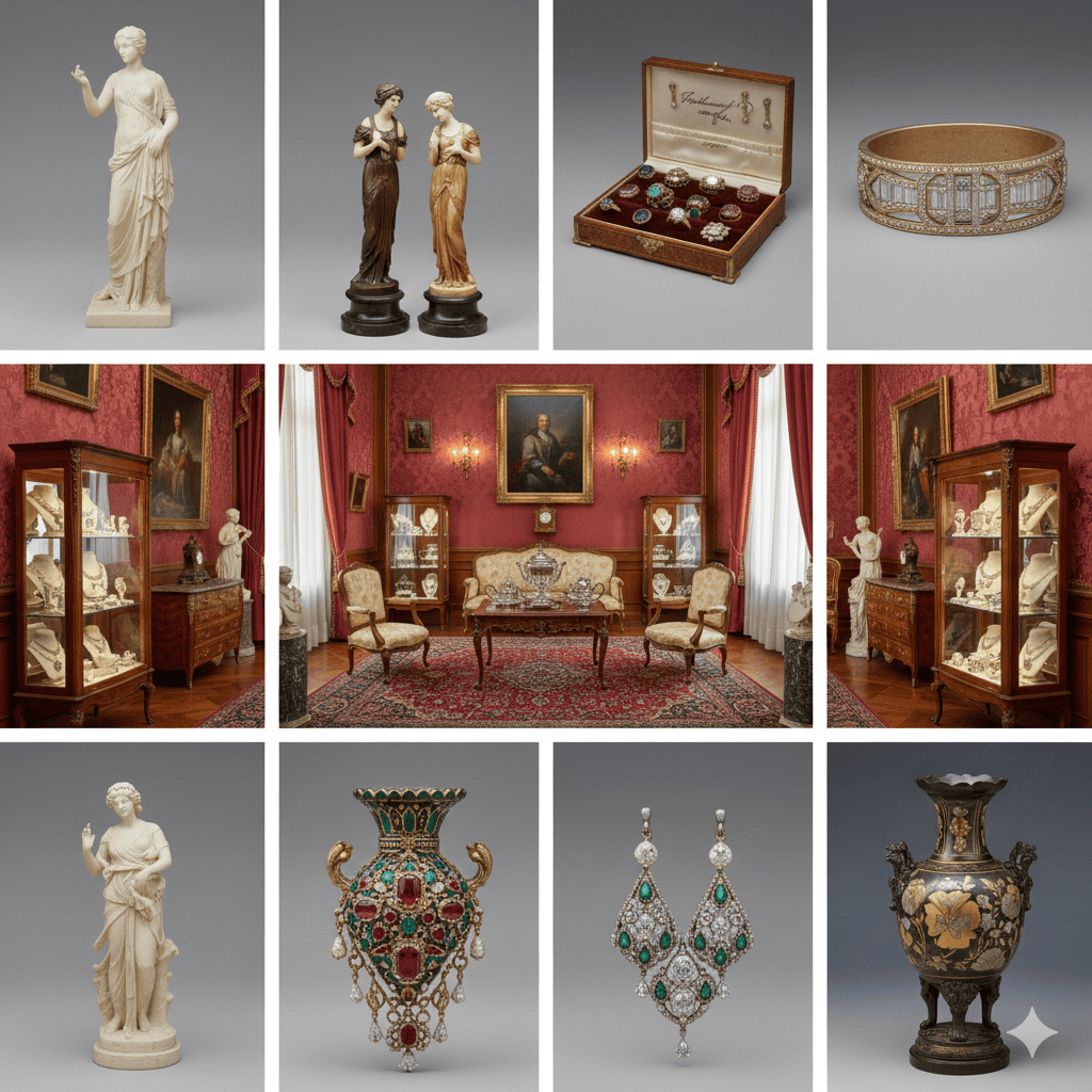 Joyas antiguas de oro y platino, relojería y platería fina.